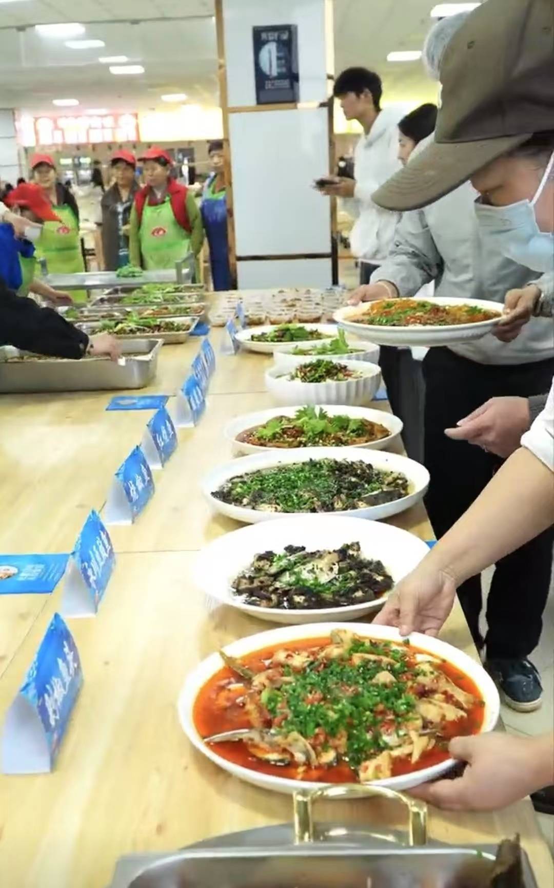 其称,食堂工作人员处理到当天22点左右,腌制后第二天又做了整整一上午。次日中午,学生们吃到了免费的剁椒鱼头、水煮鱼、松鼠鳜鱼等,烹饪方式多样。