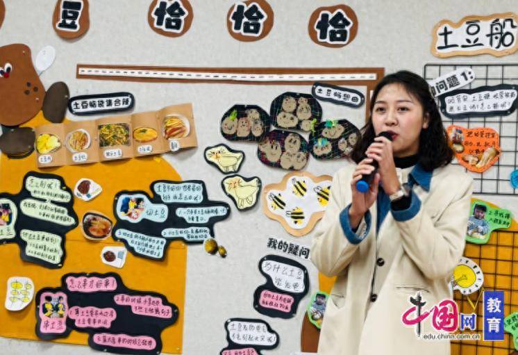 教研现场,各班教师化身“讲解员”,结合班级主题课程与幼儿发展特点,详细分享了主题墙的创设思路、教育理念与互动玩法。从“自然探秘”主题中孩子们收集的关于秋天的瓜果,到“土豆王国”里充满童趣的手工作品;从融入传统文化的节气墙面,到记录幼儿日常点滴的成长专栏,每一面主题墙都暗藏巧思,既充满童真趣味,又蕴含丰富的教育价值。